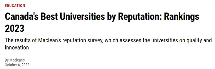 日前,麦考林杂志(Maclean’s Magazine)作为加拿大本地重要的大学排名榜单发布机构,更新了2023年的最新排名。作为加拿大唯一的大学排名榜单,其公布的高校排名具有极高的可信度,为学生们在选择和申请加拿大大学方面,提供了重要依据。