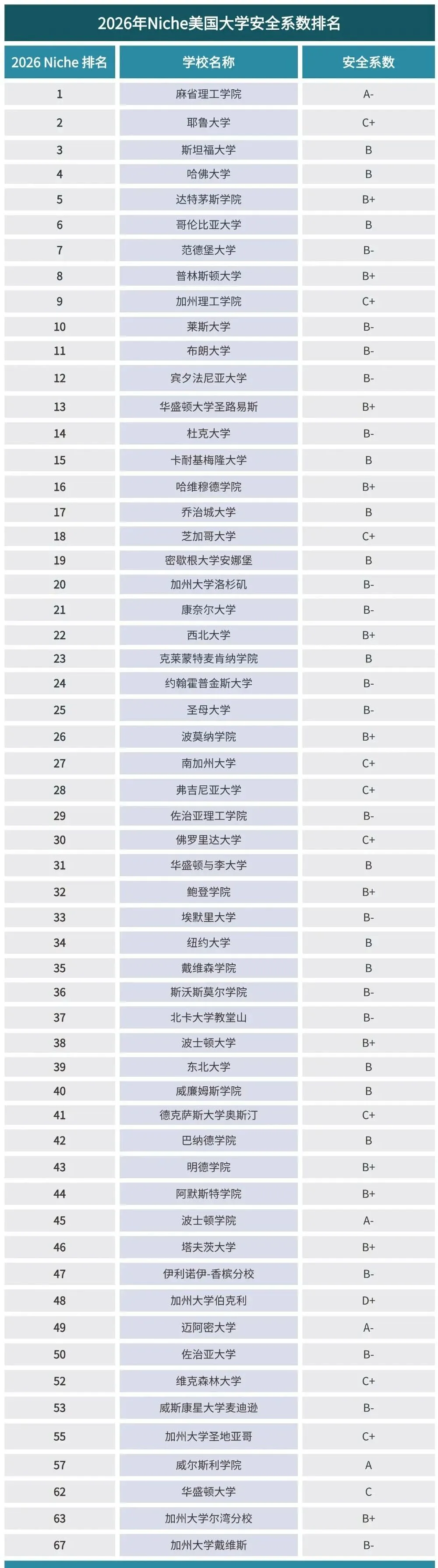- 美国留学太危险?2026最安全美国大学排名发布!